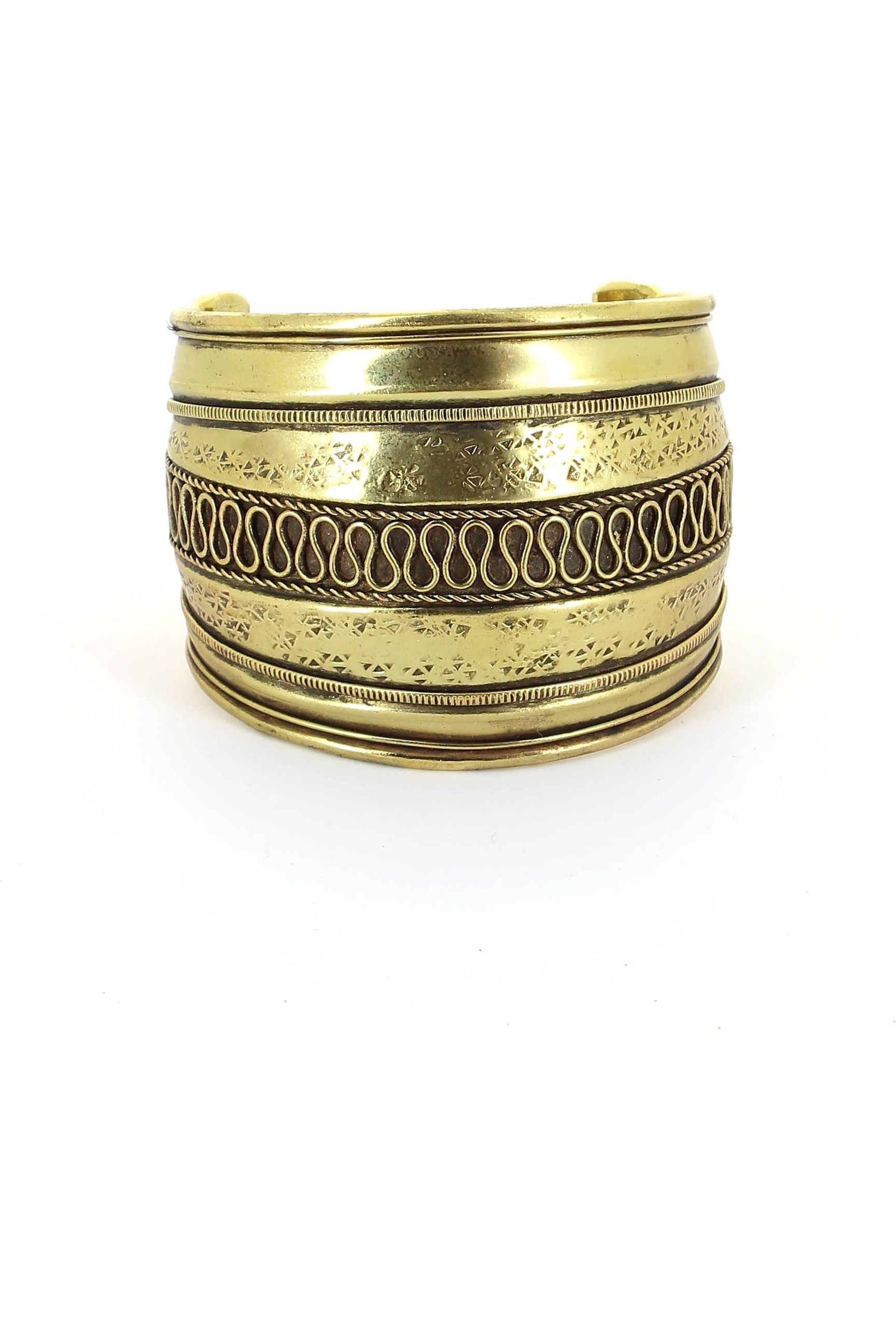 Deze etnische manchette armband is ambachtelijk vervaardigd en gegarandeerd nikkelvrij. Het is een uniek stuk dat enkele onregelmatigheden kan vertonen. U kunt het schoonmaken met een zachte doek, elk contact met een vloeistof kan het product beschadigen.