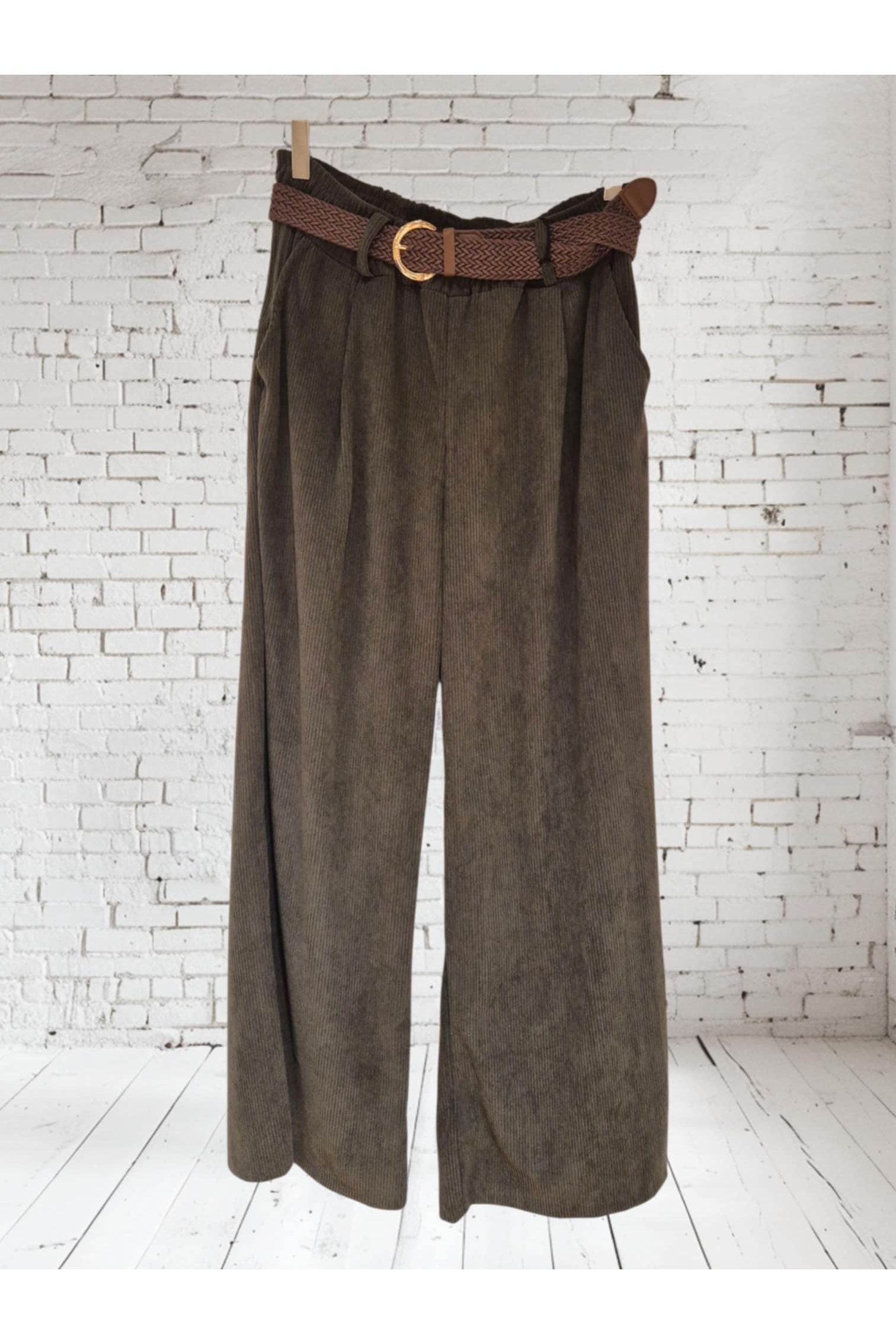 Deze corduroy broek is het perfecte mixstuk tussen comfy en chic. De zachte ribstof geeft een herfstige, cozy vibe, terwijl de wide leg snit alles heerlijk luchtig en elegant houdt. De gevlochten riem met goudkleurige gesp maakt de look helemaal af — ready to wear, zonder moeite.
