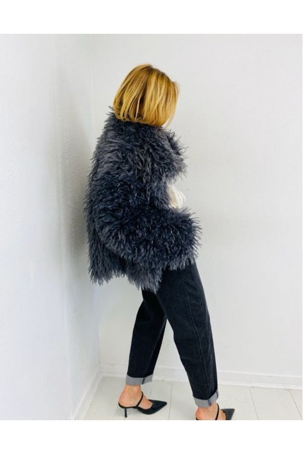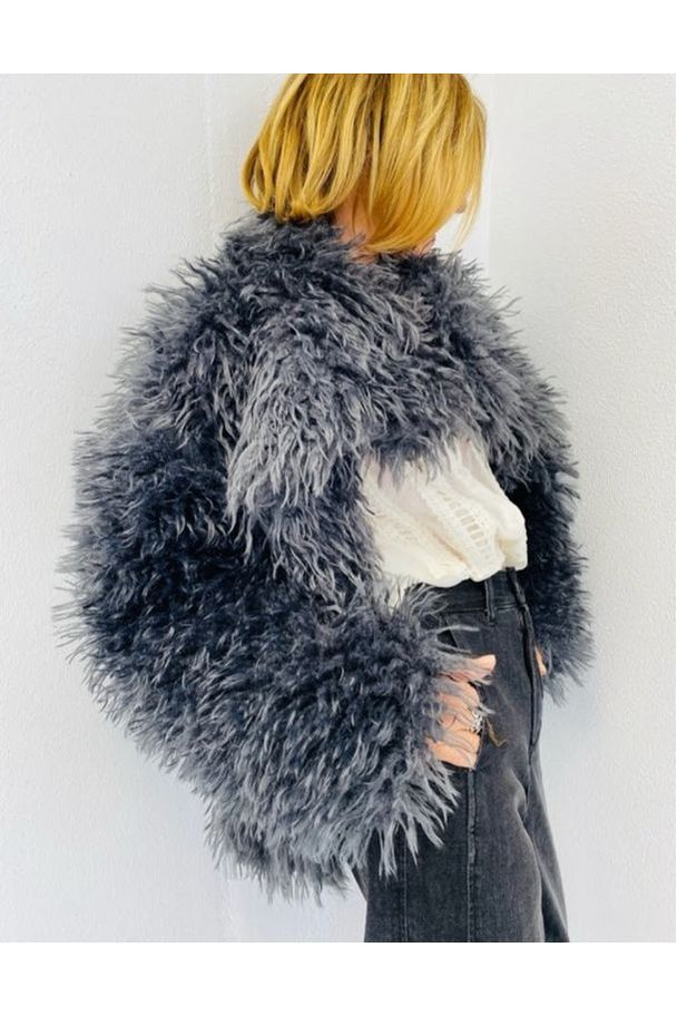 Deze korte fluffy jas is pure boho-chic en een echte blikvanger voor de koudere dagen. De jas heeft een volle, krullende structuur en een grote kraag die meteen zorgt voor een stijlvolle, nonchalante look.