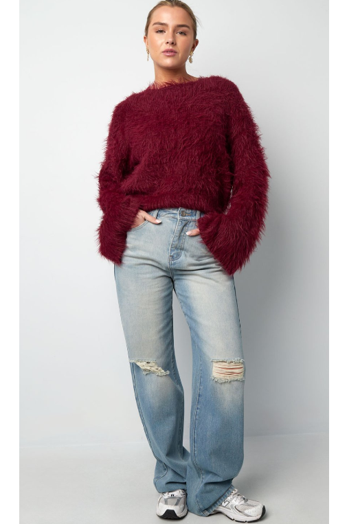 Deze fluffy knit is pure feel good-mode: heerlijk zacht, opvallend zonder schreeuwerig te zijn, en perfect om je winterlook een vleugje fun te geven.