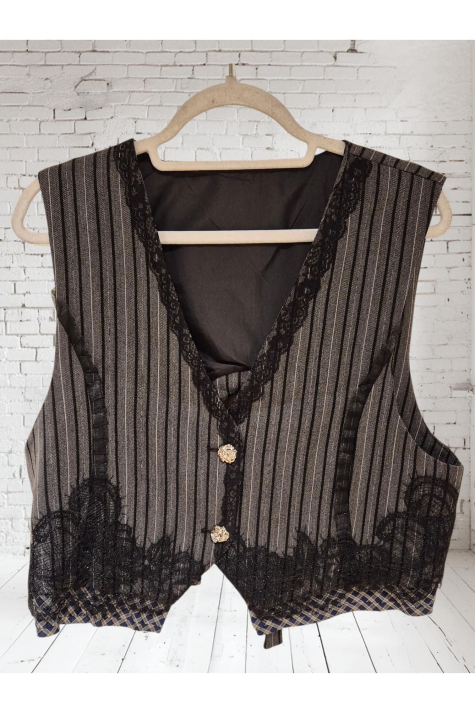 Gestreepte Gilet met Kant & Vintage Knopen
