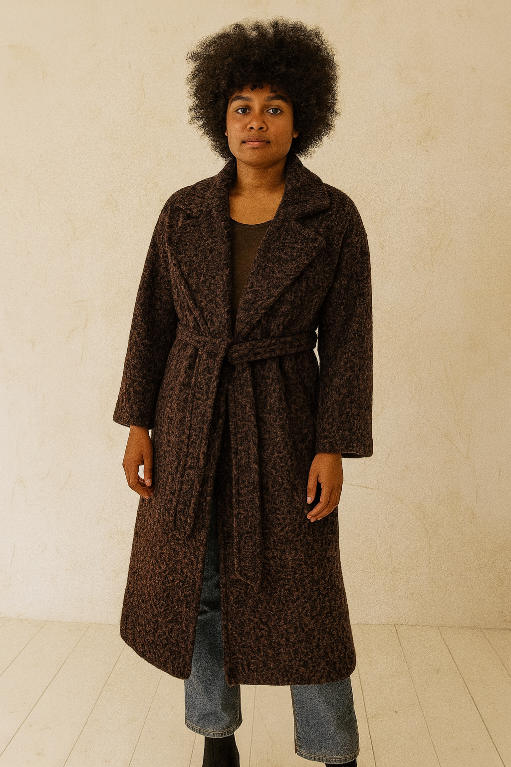 Deze prachtige mantel is jouw nieuwe statement piece voor frisse dagen. De rijke kleur en het subtiele gemêleerde effect geven hem een luxe, bohemian uitstraling. Dankzij de brede revers, bijpassende ceintuur en soepelvallende stof oogt hij zowel elegant als nonchalant.