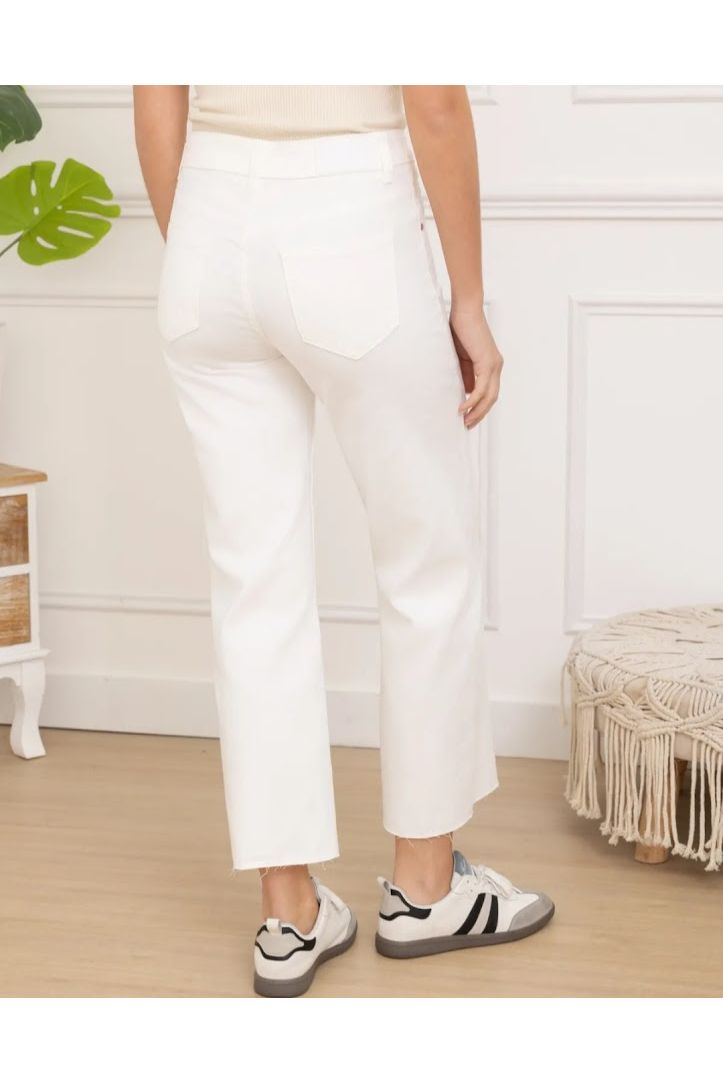 Deze witte 7/8 jeans is zo’n stuk waar je instant vrolijk van wordt. De subtiele geborduurde zonnetjes geven de broek een speelse, zomerse touch terwijl de neutrale kleur hem makkelijk combineerbaar maakt met je favoriete knit, blouse of T-shirt.