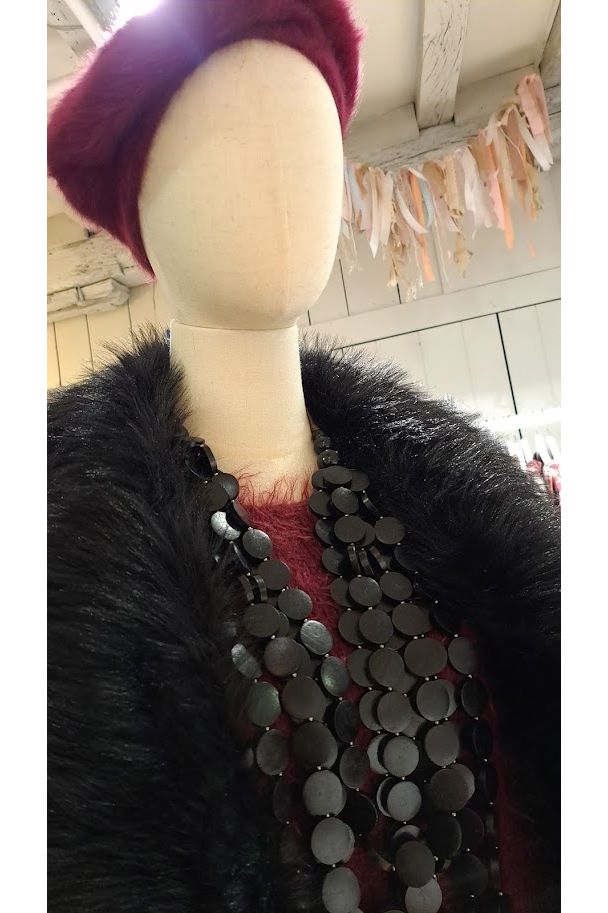 Mooi bij knitwear, feestjurken, faux fur of gewoon je favoriete basic — deze topper maakt elk silhouet net dat tikje specialer.