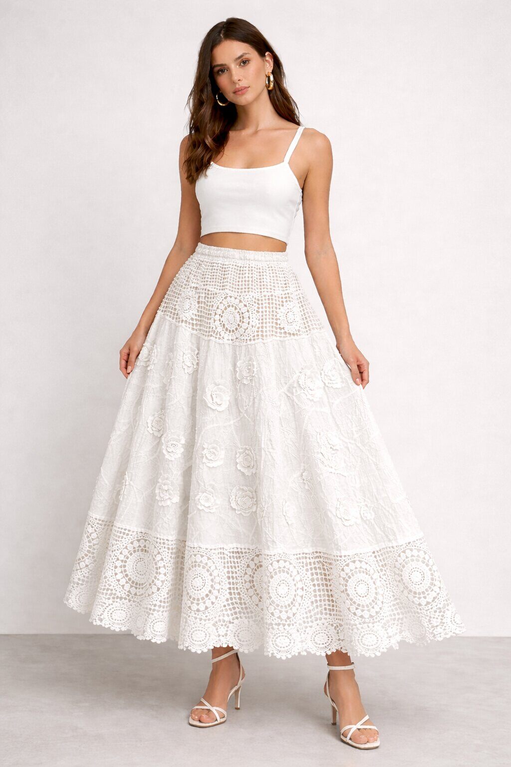 Midi rok van kant met bloemen