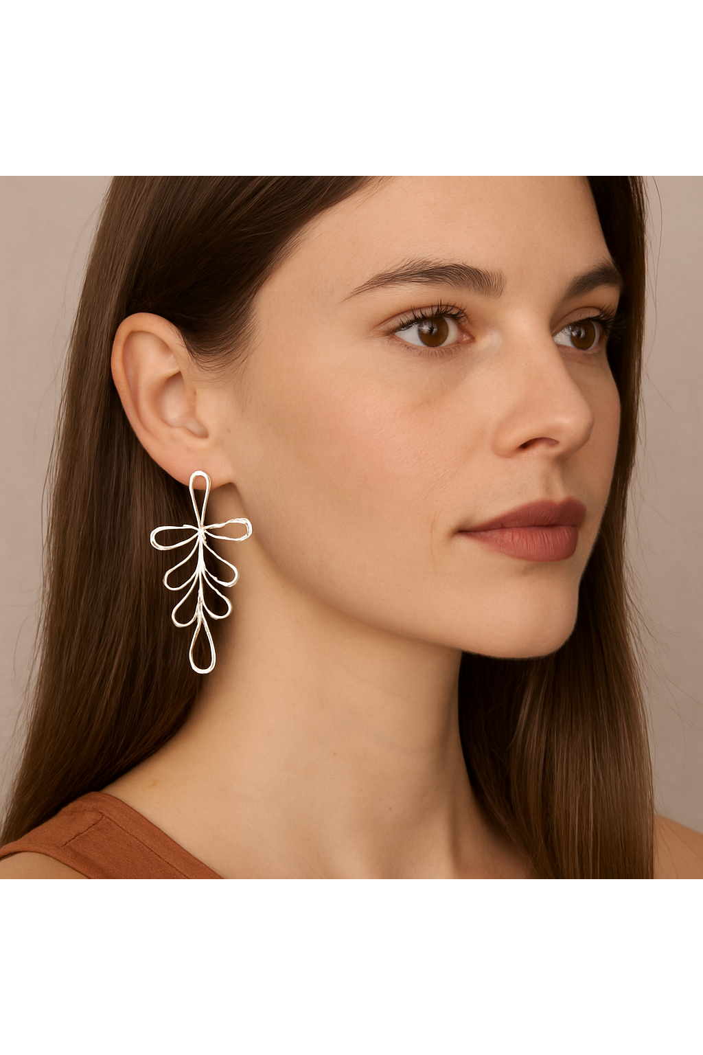 Maak een statement met deze stijlvolle stainless steel oorbellen in een uniek abstract design. De elegante, speelse vormen van de dunne draden vallen luchtig en licht langs het gezicht, waardoor ze tegelijk verfijnd én opvallend zijn. Perfect voor wie houdt van moderne sieraden met een artistieke twist.