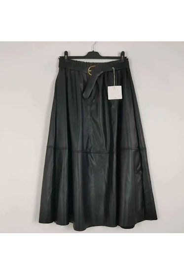 Deze rok in soepel imitatieleder is pure power met een vrouwelijke twist. De elastische taille zorgt voor een comfy fit, terwijl de bijpassende riem met goudkleurige gesp een vleugje elegantie toevoegt. Het A-lijn model valt mooi uit en beweegt mee met elke stap — perfect met een knit trui en stoere laarsjes, of juist met een satijnen blouse voor een edgy-chique look.