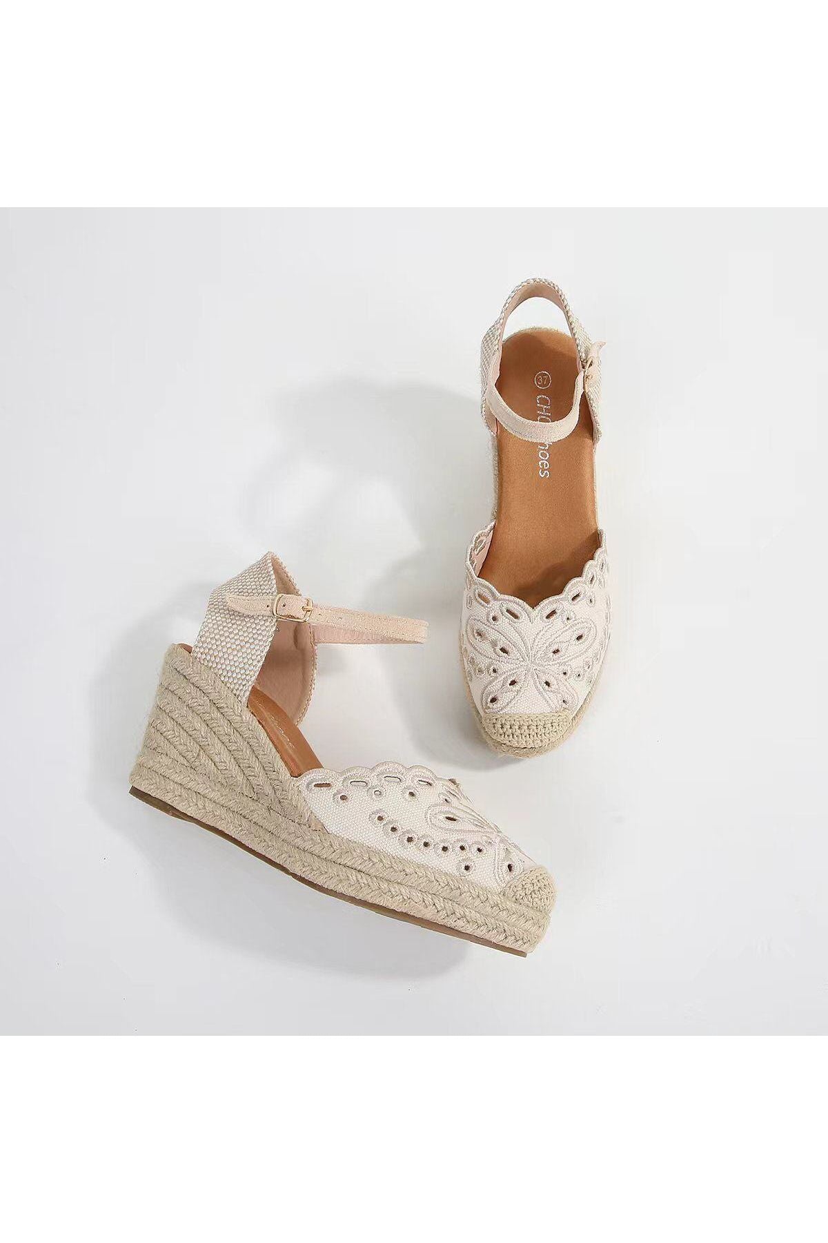 Espadrille sandalen met sleehak – €29,95