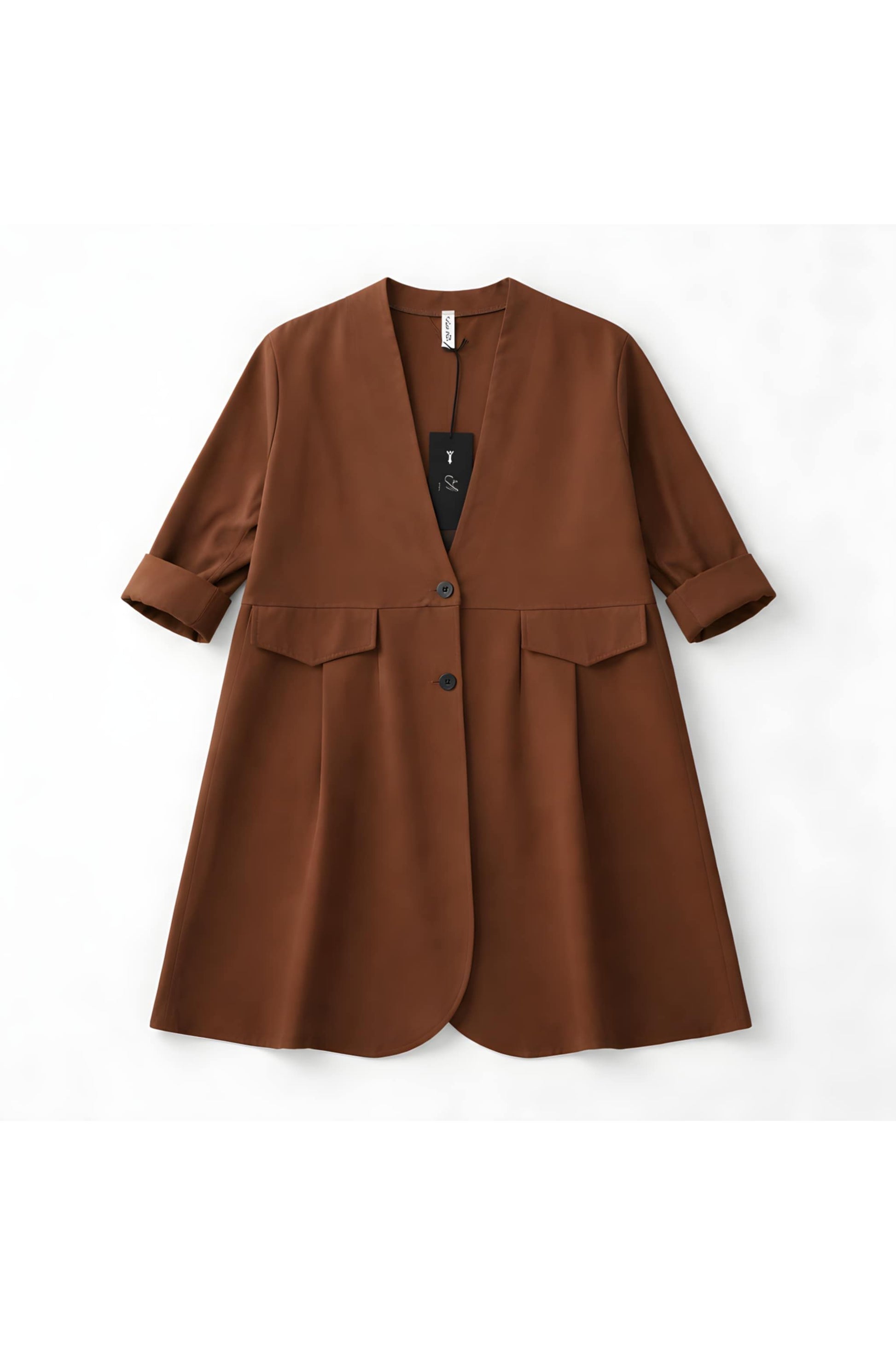 🤎 Soepel manteltje met V-hals – warm bruin 🤎