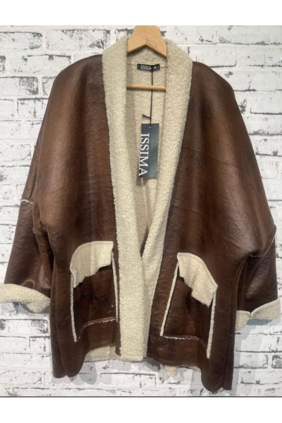 Deze bruine jas in kunstsuède is een echte must-have voor het najaar en de winter. De binnenkant is volledig gevoerd met zachte teddy, waardoor hij heerlijk warm en comfortabel zit. De oversized pasvorm en ruime zakken geven de jas een nonchalante, bohemian uitstraling.