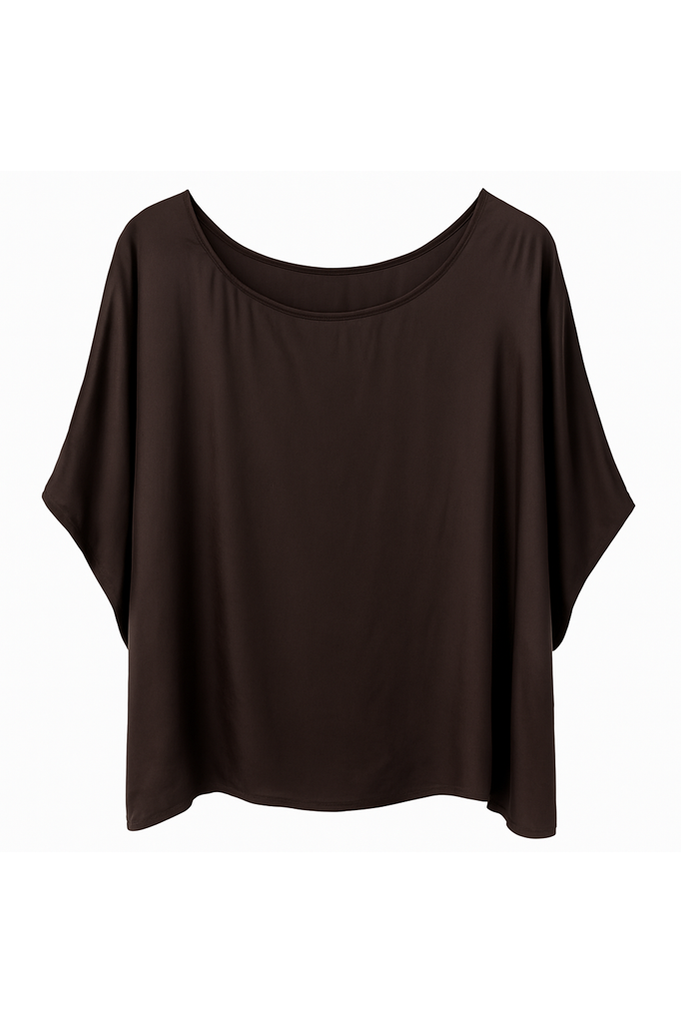 Zijden-look top met vleermuismouw – diep chocoladebruin