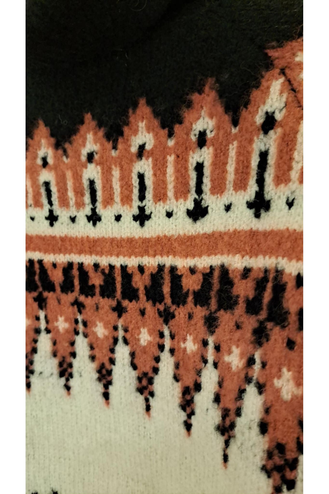 Zacht, warm en met een vleugje boho chic. Deze trui in crème, oud roze en zwart heeft een opvallend etnisch geïnspireerd patroon en een cozy rolkraag – perfect voor frisse dagen. Het model valt losjes en heeft een heerlijk draagcomfort, ideaal voor een stijlvolle winterlook met een jeans of lange rok.
